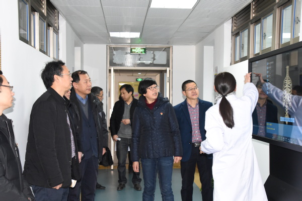 我校党委书记崔戴飞、副校长吴健陪同龙职院领导参观了医学实训楼人体形态虚拟实训室、全息3D虚拟数字人实训室、OSCE考试中心、标准化病房,艺术设计实训楼和图书馆。崔戴飞向龙职院领导详细介绍了我校积极开展养老护理、母婴护理等社会服务项目,以及学校在产教融合、校企合作、人才培养质量、特色体育项目等方面所获得的成效,得到了赵继会等一行的高度评价。
