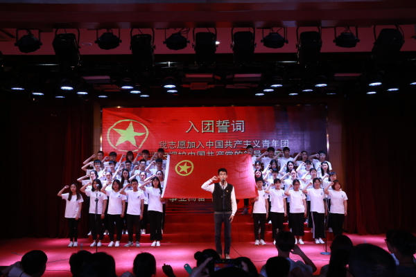 随后,“我志愿加入中国共产主义青年团, 坚决拥护中国共产党的领导, 遵守团的章程……”校团委副书记带领团员代表庄严宣誓,响彻全场,展现了我校青年团员积极向上的精神风貌。