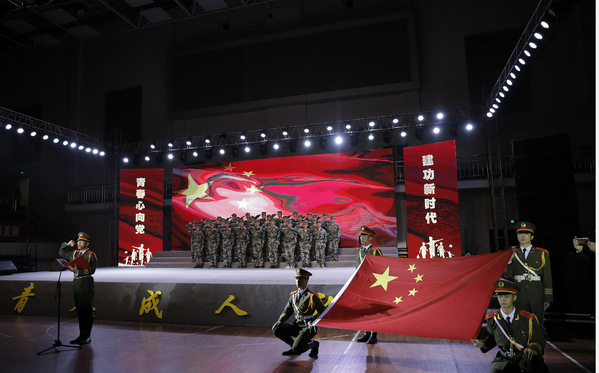 立志:广大青年要励志,立鸿鹄志,做奋斗者。“我宣誓,因为有我,人民将更加幸福!因为有我,家园将更加美好!因为有我,祖国将更加昌盛……”国旗护卫队带领全场新生以天地为鉴,以国旗为证,庄严宣誓,震撼人心,昭示着热血青年的鸿鹄斗志。信息工程学院学生代表刘勇的演讲《我的军旅我的梦》,慷慨激昂地讲述了他从军入伍、励志奋进的故事,用亲身经历启示广大同学要立志报国。医学院合唱团带来的情景合唱《国际歌》,诉说着一代代中国共产党人栉风沐雨、矢志报国的初心和使命,引领广大青年学生传承红色基因,厚植家国情怀。