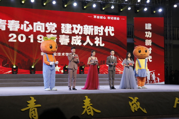 为深入学习贯彻习近平新时代中国特色社会主义思想,全面贯彻落实习近平总书记在学校思想政治理论课教师座谈会上的重要讲话精神,加强思政活动课程建设,推动“立德树人”根本任务在我校重重落地,10月28日晚,由校团委主办、校学生会承办的“2019青春成人礼”在学校体育馆隆重举行。全体校领导、教职工党员以及全校2000余名19级新生共同见证了本场青春盛典。