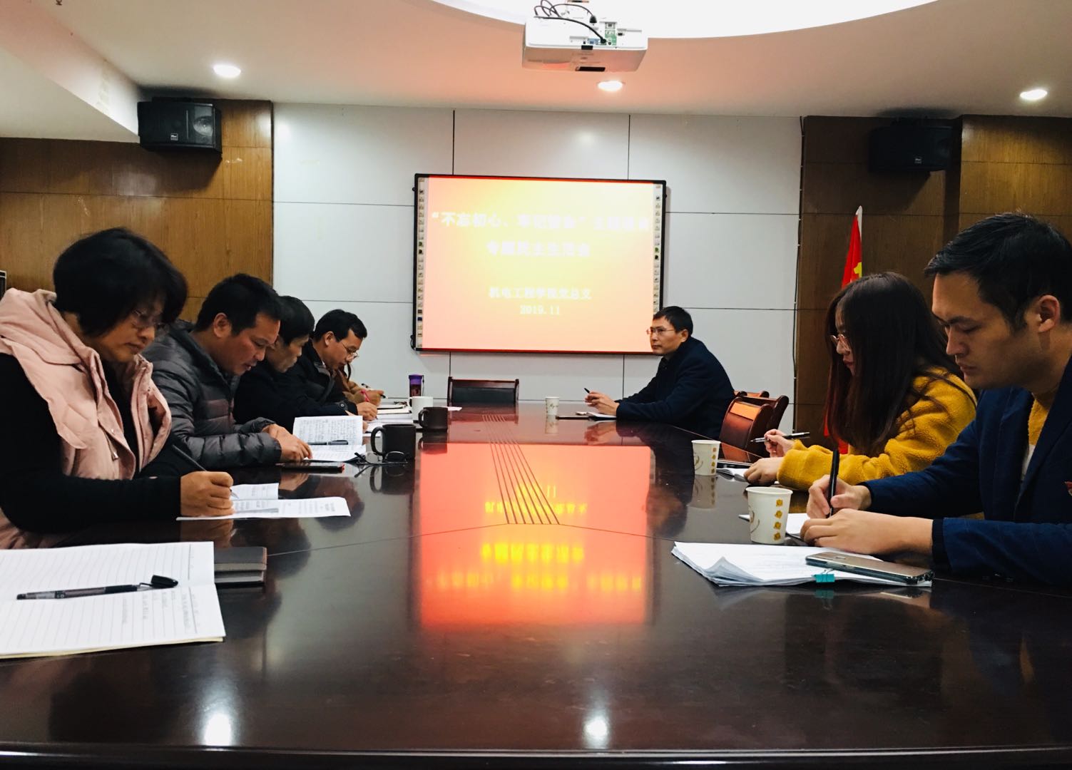 2018年11月27日晚6:30,机电工程学院召开“不忘初心、牢记使命”主题教育专题民主生活会。校党委副书记王东升,主题教育巡回督导组樊美君、王刚列席。机电工程学院党总支全体成员参加了会议,会议由巫少龙主持。