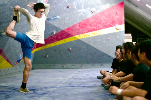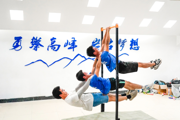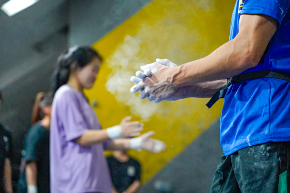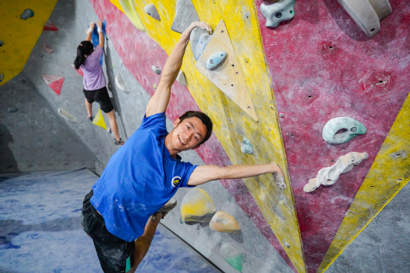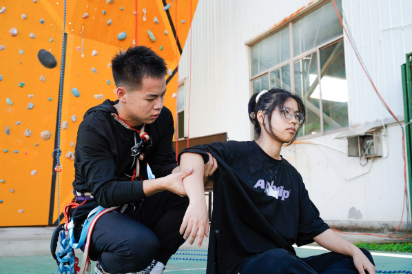 “攀岩运动需要耐力,更考验智慧,每一次发力,每一处落点,都要带着思考去拆解赛道,直至登顶。”黄鑫同样是校攀岩队的一员,这个戴着眼镜略显腼腆的大男孩一聊到攀岩就滔滔不绝。“攀岩比赛的‘难度赛’‘速度赛’‘攀石赛’分别对应奥林匹克精神的‘更高’‘更快’‘更强’,我也一直以更高、更快、更强的标准在日常训练中要求自己。”黄鑫说只要有时间他们就待在训练场,晴天在室外磨技术,雨天在室内练体能,没课的时候一练就是一整天。