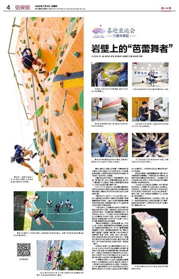 “尽管攀岩还属于小众运动,但随着各类赛事的举办,这项集挑战性、技术性、趣味性、观赏性于一身的新兴运动正逐渐走进大众视野。”王俊舰说,2016年,攀岩被确定为2020年东京奥运会正式比赛项目;雅加达2018年第18届亚运会首次将攀岩列入比赛项目。今年的杭州亚运会,攀岩项目将产生6枚金牌。
