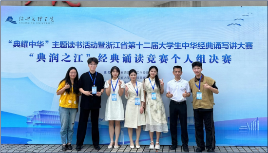 诵中华经典,传中国精神。近日,浙江省第十二届大学生中华经典诵写讲大赛“典润之江”经典诵读竞赛决赛在绍兴文理学院落下帷幕。今年全省本科和专科共212名选手参与决赛。经过激烈角逐,在专科组个人赛中,我校师生奋勇拼搏,获得4个一等奖,1个三等奖,一等奖获奖人数创我校该项赛事历史最高纪录。来自23应用英语2班高玉结(龚慧兰、闫姗指导)、23中医王鸿宇(闫姗、龚慧兰指导)、23护理8班冯梦瑜(倪剑、张皓鸣指导)、22应用英语金瑜慧2班(张皓鸣、倪剑指导)4人表现优异齐获一等奖,22应用英语1班陈妍冰获得三等奖(龚慧兰、闫姗指导)。由于每所高职院校至多4位选手进入决赛,取得满额一等奖的院校今年仅有两所,我校占据一席之地。