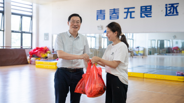 7月22日,校党委书记徐须实走访慰问暑期在校筹备教学能力比赛的团队老师,校党委委员、副校长姚水洪,办公室主任倪立宠,教务处长王建陪同.