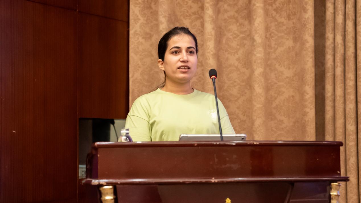 浙江中医药大学研究生,伊拉克学生玛丽亚作为学员代表发言,表示对能够参加本次夏令营感到无比荣幸和激动。期待在接下来的几天里,能够深入学习针灸文化,与来自世界各地的同行们交流切磋,共同提升针灸技术水平。