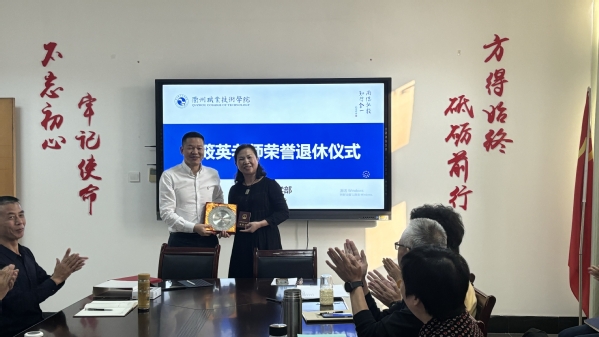 10月9日下午,公共教学部在行政楼801会议室为毛筱英老师举行荣誉退休仪式,党委委员、副校长姚水洪,公共教学部主任徐云青、副主任陈锦娟及公共教学部全体教师参加。