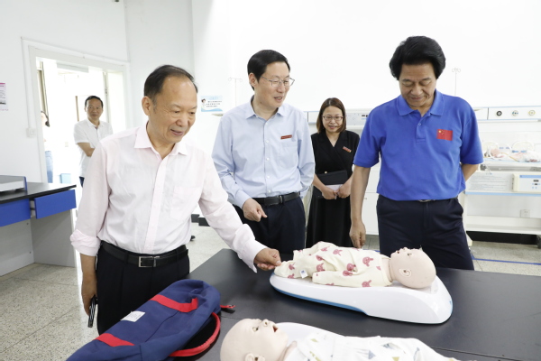 徐卸古、朱建华等一行实地走访参观了我校共富学院、工业互联网实训中心、医护康养实训中心、四省边际大健康公共实训中心,详细了解我校在健康管理领域推进产教融合、提升人才培养质量以及服务社会发展的实践与探索。