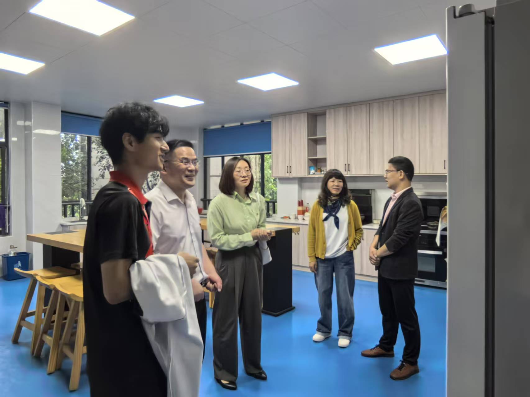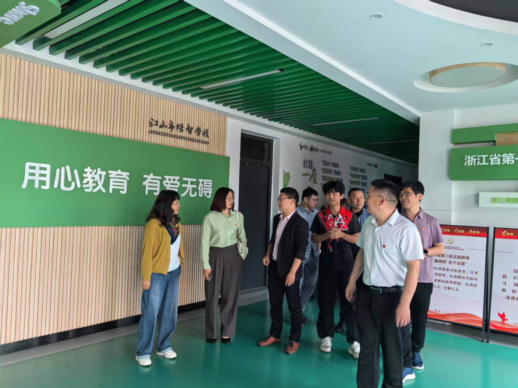 在学校负责人引导下,党员们参观了教学区与实训基地。明亮整洁的教室里,个性化的教学设备与色彩斑斓的墙面布置,展现出学校为满足学生特殊教育需求所做的努力;实训室内,孩子们亲手制作的作品整齐陈列,每一件都凝聚着他们克服困难、认真学习的汗水。“我们的学生通过职业技能训练,正在逐步掌握独立生活的能力。”校方的介绍让党员们深受触动,也更深刻理解特殊教育的价值——不仅是知识的传授,更是生命力量的激发。