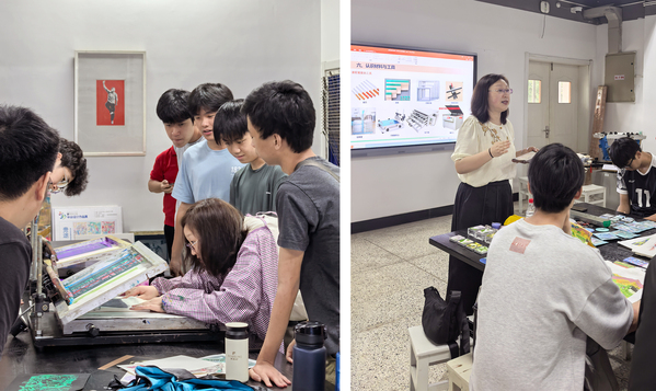 活动最后,学生们在丝网印刷实训空间亲手体验帆布袋制作。在林晓丽老师指导下,大家选择图案,完成刮墨、套色、印制等步骤,每人创作了一件独特的文创帆布袋。现场气氛活跃,留学生们纷纷表示这是一次难忘的文化之旅,让他们在实践中感受了中国文化的魅力和艺术与科技的融合。